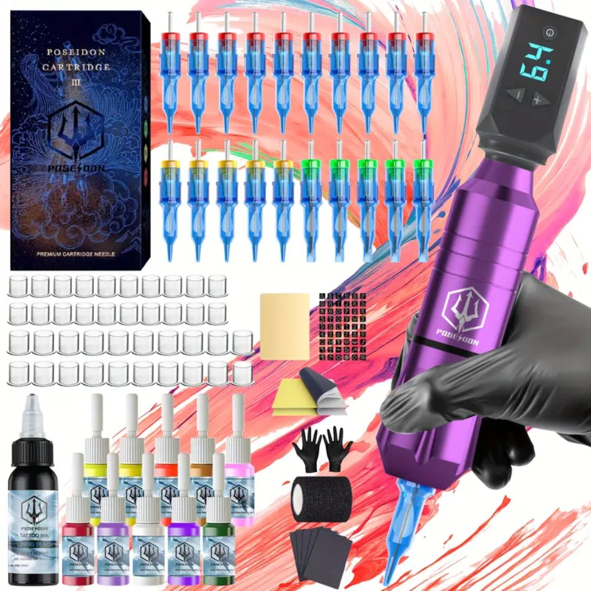 Ten kompletny zestaw to idealne narzędzie dla każdego tatuażysty – od początkujących po profesjonalistów.